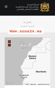 وفي خانة “إتصل بنا” في أسفل الموقع، تطالع خارطة المملكة المغربية من النصف الشمالي فقط، بينما أقاليمنا الجنوبية مكتوب عليها “الصحراء الغربية” وهي العبارة التي تستعملها الجزائر وشرذمة البوليساريو.