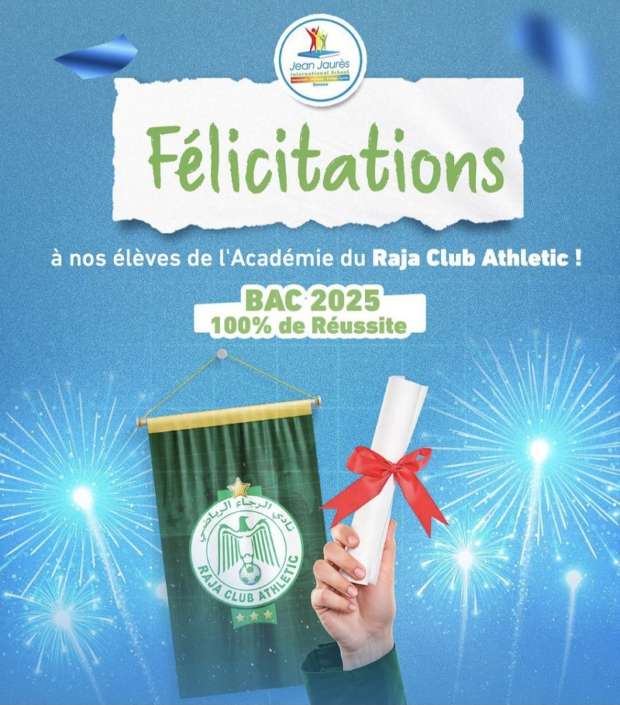 مرة أخرى، يثبت التفوق الدراسي أنه لا ينفصل عن التكوين الرياضي والتربوي الجيد، بعدما حققت أكاديمية نادي الرجاء الرياضي، التي تُشرف عليها مجموعة مدارس “جون جوريس” الخاصة بمدينة الدروة، نسبة نجاح كاملة بلغت 100 في المائة في امتحانات البكالوريا لهذه السنة.